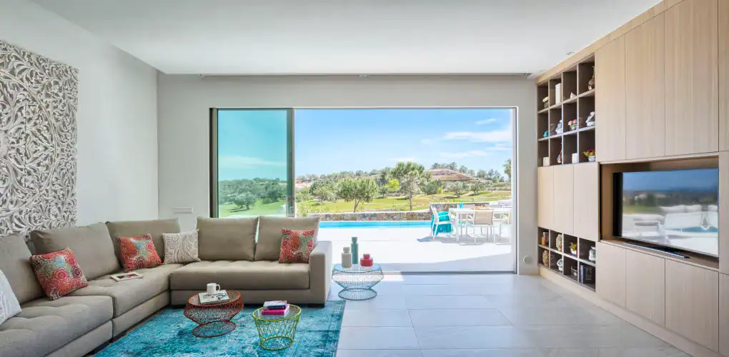 This meticulously designed villa spans 270 sqm (2,906 sq ft) and features high ceilings and expansive windows that enhance natural light and create an airy, open-plan living environment. Thoughtfully designed with intelligent features, the villa includes bi-folding kitchen units that can be closed to create a minimalist aesthetic, adding to the sleek, modern feel.