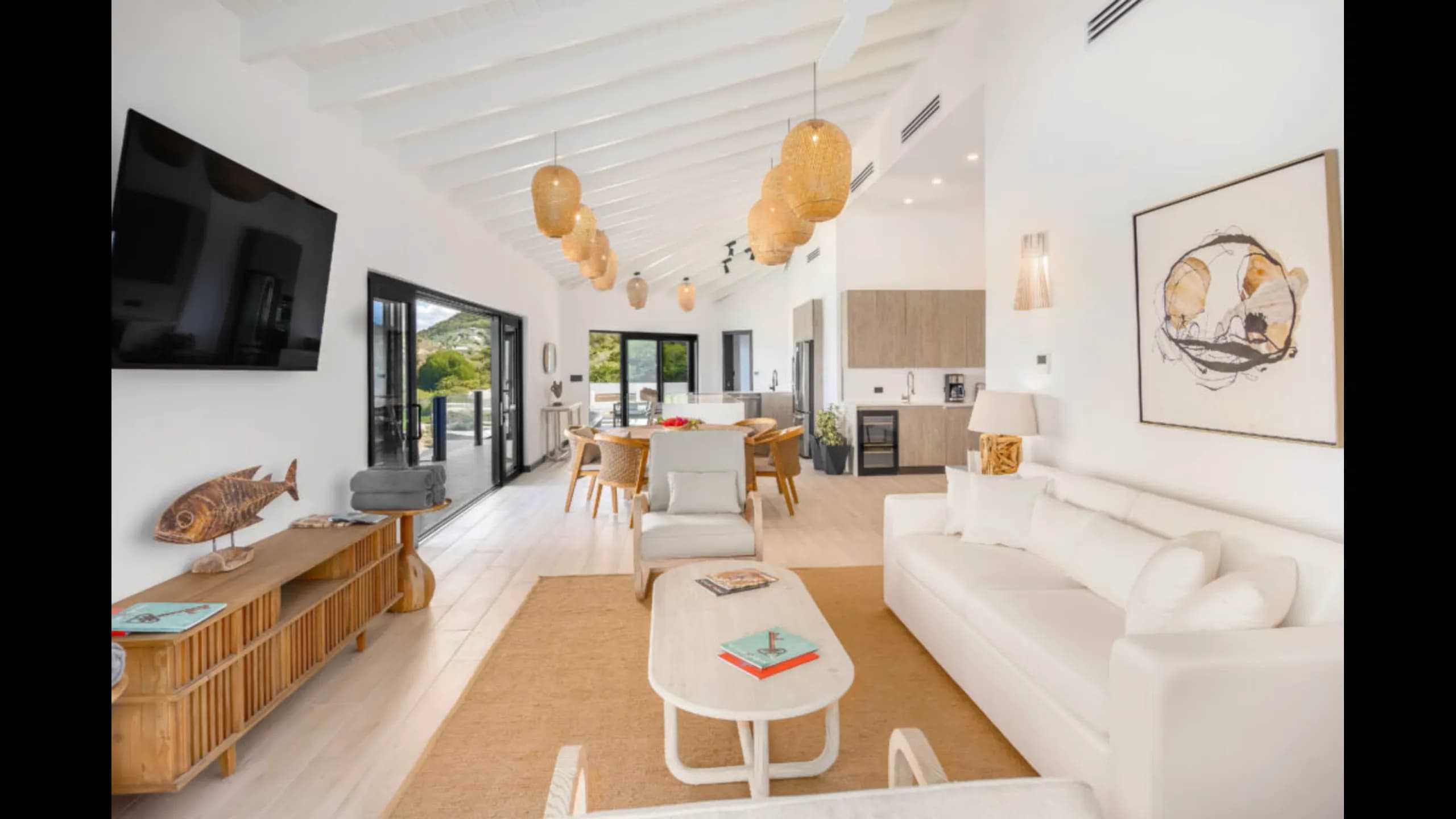 Spanning 250 sqm (2,690 sq ft), this contemporary villa boasts three spacious bedrooms, each with its own private bathroom, and is designed to provide an exceptional living experience. The villa features panoramic windows that frame breathtaking ocean and mountain views, filling the space with natural light and capturing the beauty of the Caribbean landscape. The open-plan layout includes a fully-equipped kitchen and ample living areas, making it perfect for both relaxed family living and elegant entertaining.